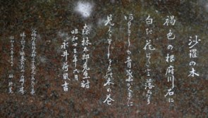 鴎外記念室の庭に面した壁に、永井荷風の書による森鴎外の詩『沙羅の木』の碑があります。