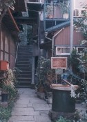「約二十分の後、彼は安藤坂を上つて、伝通院の焼跡の前へ出た。大きな木が、左右から被(かぶ)さつてゐる間を左りへ抜けて、平岡の家の傍(そば)迄来ると、板塀から例の如く灯が射してゐた」 『それから』(十四の六)
