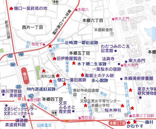 「私はとうとう万世橋を渡って、明神の坂を上がって、、本郷台へ来て、それからまた、菊坂を下りて、しまいに、小石川の谷へ下りたのです」 『こころ』