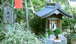 まず、茗荷谷駅を左手に出て丸の内線のガードをくぐり、拓殖大学の方へ坂を下りましょう。大学の前に深光寺(小日向4-9-5)があり、本堂の前に恵比寿様が祀られています。漁業と商売繁盛の神様です。本堂の左手には、南総里見八犬伝などでおなじみの滝沢馬琴のお墓もあります。