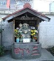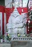 真珠院を出て右手に歩くと、伝通院の大きな本堂が見えます。道なりに行くと伝通院の正面にでます。伝通院参道に出たら右手すぐが、福聚院(小石川3-2-23)です。幼稚園を横切るとお寺の本堂があります。鎌倉時代の作といわれる御本尊の大黒天は文京区の有形文化財に指定されています。この本堂の真向かい、やはり幼稚園の敷地に面した所にも大黒天が祭られています。台所,食物を司る神様です。