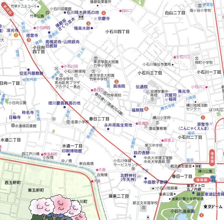 案内図をいただいて歩くとわかりやすく、小石川七福神公認のスタンプを集めても楽しいでしょう。