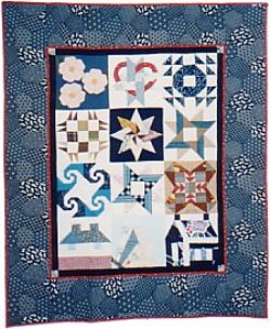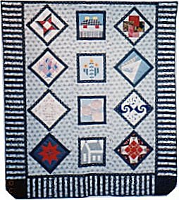 これは壽美子さんのキルト。 彼女は以前に外国のお友達から いただいたブロックとあわせて、 一枚のキルトに仕立てました。 | ![]() |