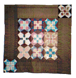 啓子さんのキルト。 自分でこのパターンを デザインして、住んでいる 所にちなんで、 「池袋」と名づけました。 | ![]() |